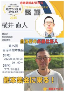 今回はなんと!!「地方公務員AWARD2025」を受賞した、福井県鯖江市職員の横井直人さんが登壇します。